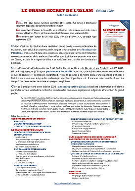 Le travail d’étude des origines de l’islam et de veille quant aux publications des chercheurs sur ce sujet a conduit Odon Lafontaine à modifier substantiellement son livre Le grand secret de l’islam, en proposant une mise à jour de la thèse d’Édouard-Marie Gallez à la lumière des recherches nouvelles conduites depuis 2004. Ce gros travail, conduit avec lui, aboutit à une description plus précise, plus académique, des origines de l’islam, depuis les influences judéonazaréennes jusqu’aux développements poursuivis par les califes de Bagdad. Ce travail renforce les découvertes et le cadre présentés par Gallez. La nouvelle édition est significativement augmentée (fichier pdf de 141 pages, livre de 256 pages ; 141 notes de bas de page).
